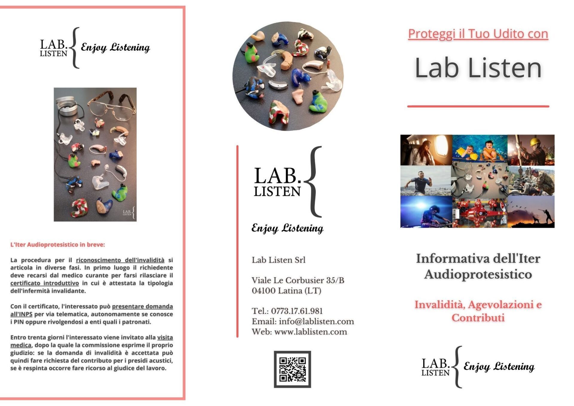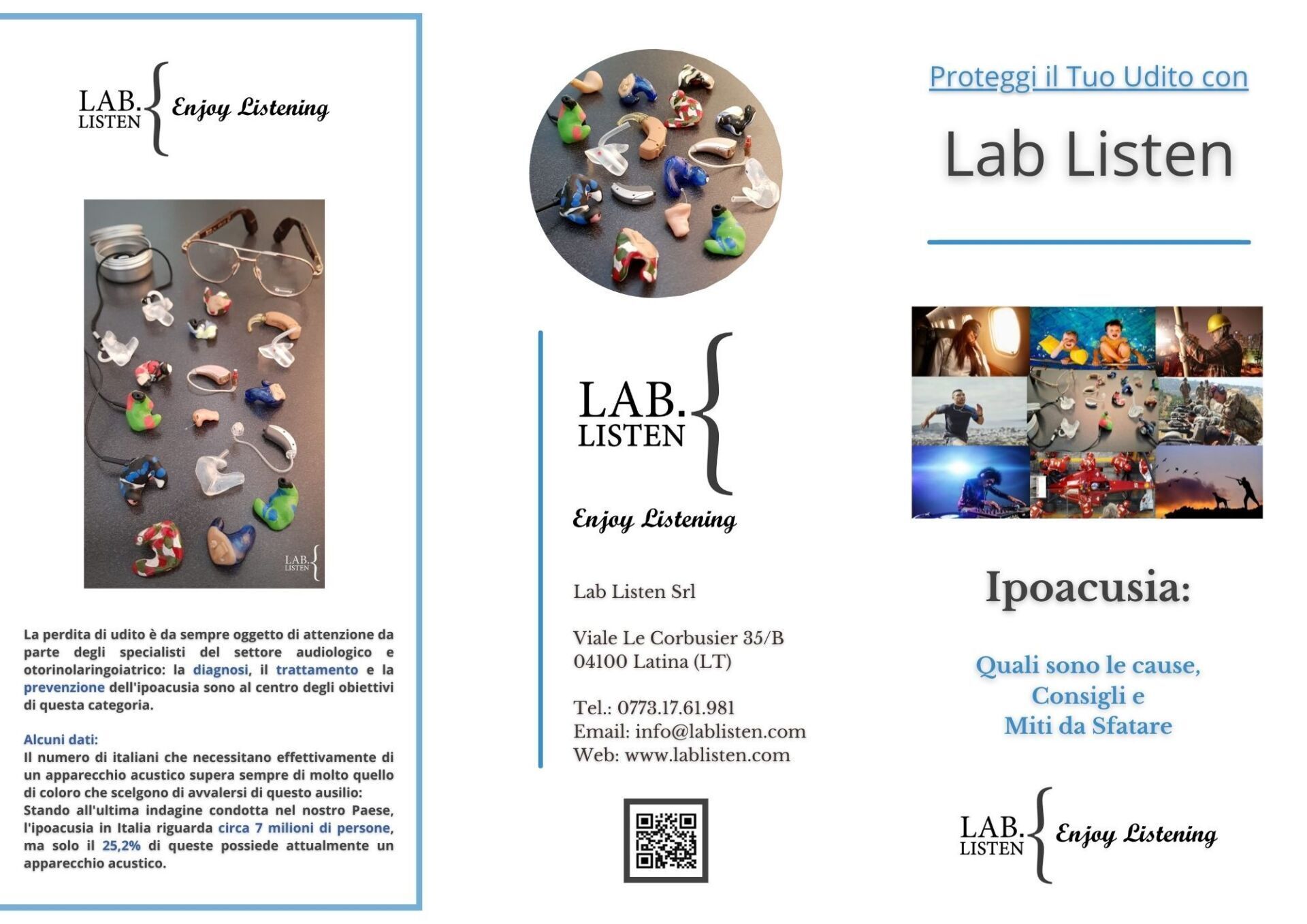 Centro Lab Listen, specializzato con sede a Latina in Via Pontinia 62, offre una vasta gamma di prodotti ed accessori per tutto ciò che riguarda il mondo dell'udito, dalla prevenzione e tutela durante i lavori e gli hobby più rumorosi alla personalizzazione di adattatori cuffie per attività sportive ed altro.